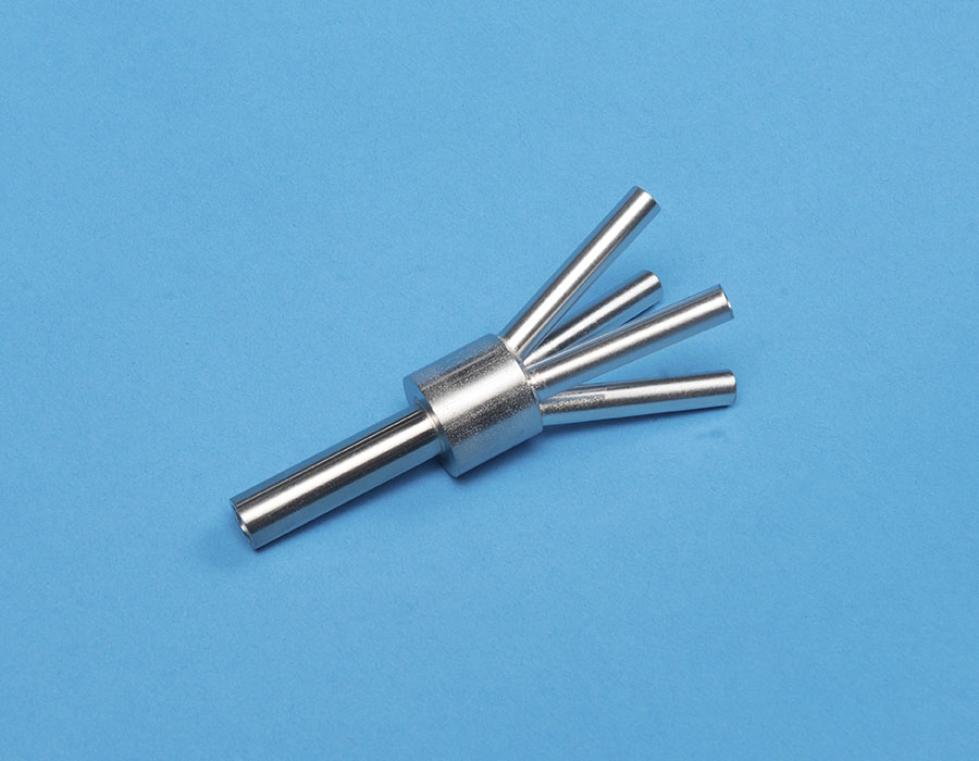 ⢠Four-way splitter design employs a 3/8ⳠOD inlet and four 1/4ⳠOD outlets